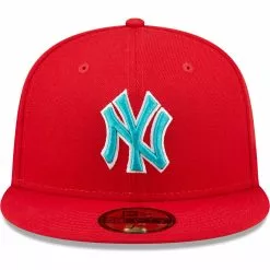 Men’s New York Yankees New Era Scarlet Yankee Stadium Teal Undervisor 59FIFTY Fitted Hat