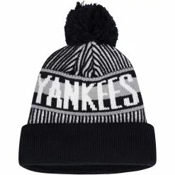 Youth New York Yankees New Era Navy Striped Cuffed Knit Hat With Pom
