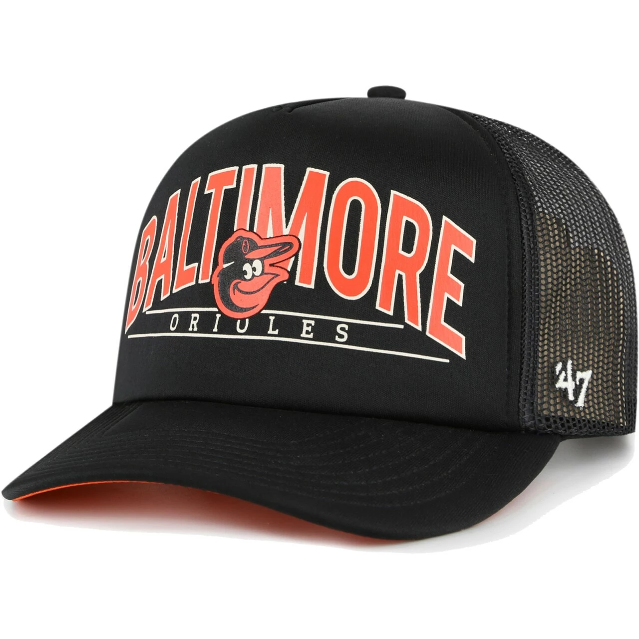Upgrade your selection of Baltimore Orioles gear while adding the perfect finishing touch to any casual outfit with this Backhaul Foam trucker hat from ’47. The bold Baltimore Orioles graphics printed on the soft front panel of this snapback ensure your loyalty is always on full display. Designed with mesh paneling for extra breathability, this cap is a comfortable, stylish and spirited piece to add to your wardrobe.