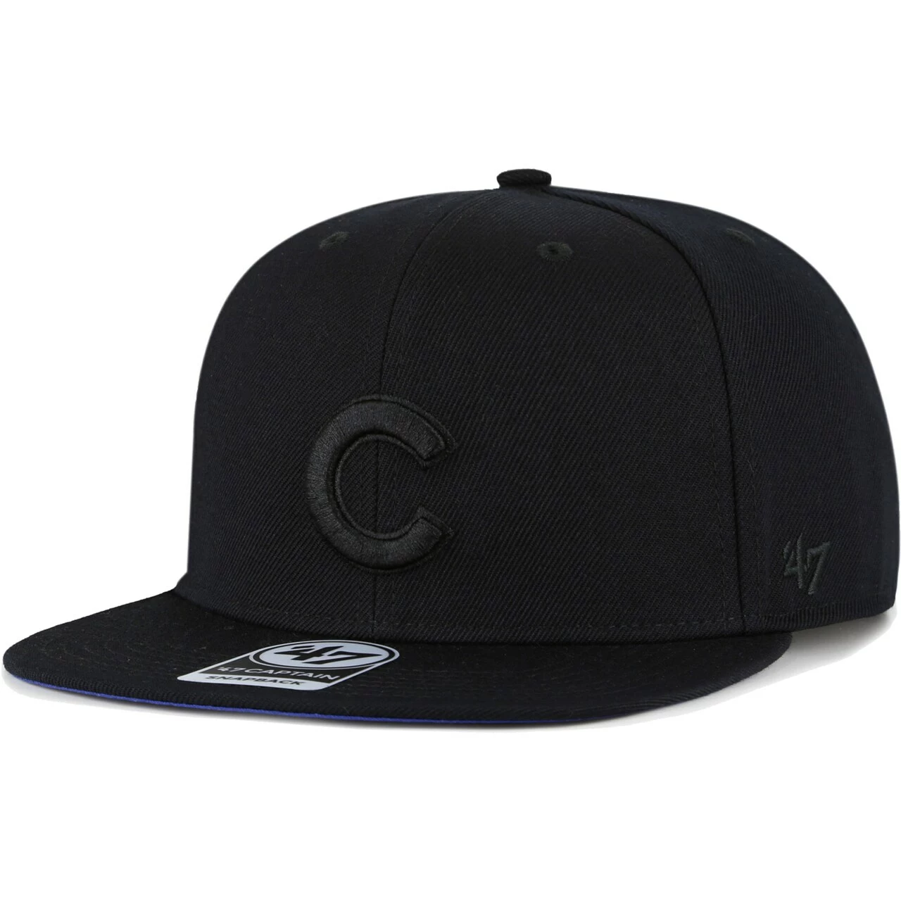 When the Chicago Cubs hit the field, add a subtle touch of team spirit with this Black on Black Sure Shot Captain hat. Crafted by ’47, this bold cap features embroidered graphics and a vibrant contrast-color undervisor to further elevate your style and pride. With a snapback closure, classic construction and flat bill, this cap will fit perfectly with any Chicago Cubs gear.