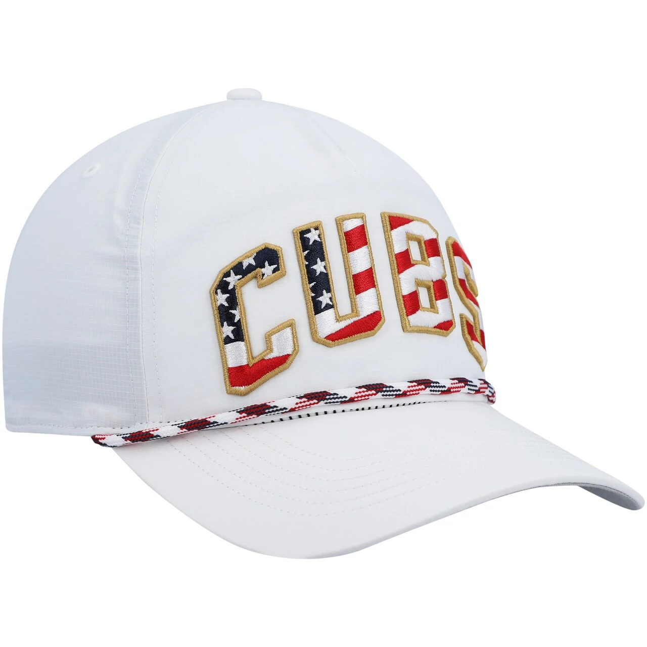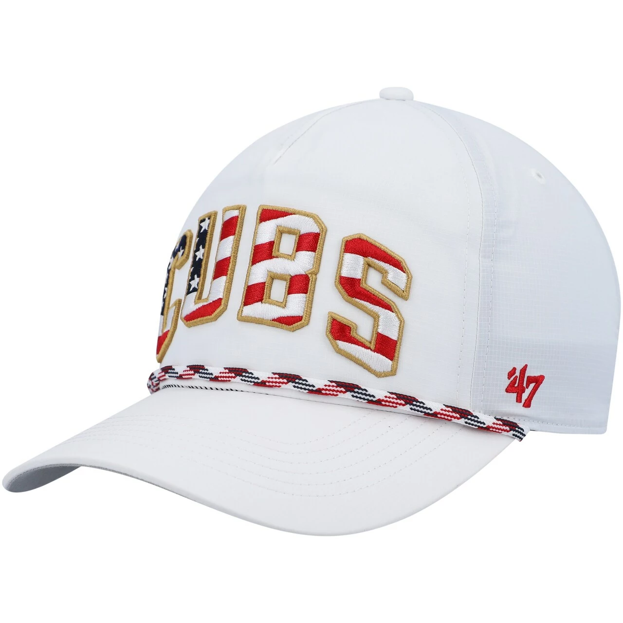Express your patriotism and Chicago Cubs fandom with this Flag Flutter Hitch snapback hat from ’47. Its contrast-color undervisor and braided rope add a unique flair. A woven Chicago Cubs clip tag on the back completes the look.