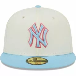 Bring some fresh Spring Color to your New York Yankees headwear with this 59FIFTY hat from New Era. Its two-tone design features the New York Yankees logo in pastel hues that coordinate with the contrasting visor. The fitted construction also ensures you get the perfect fit.